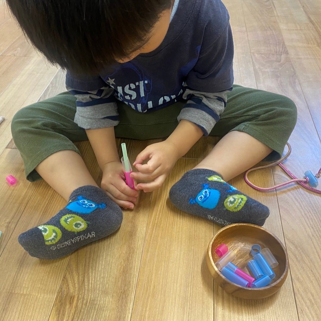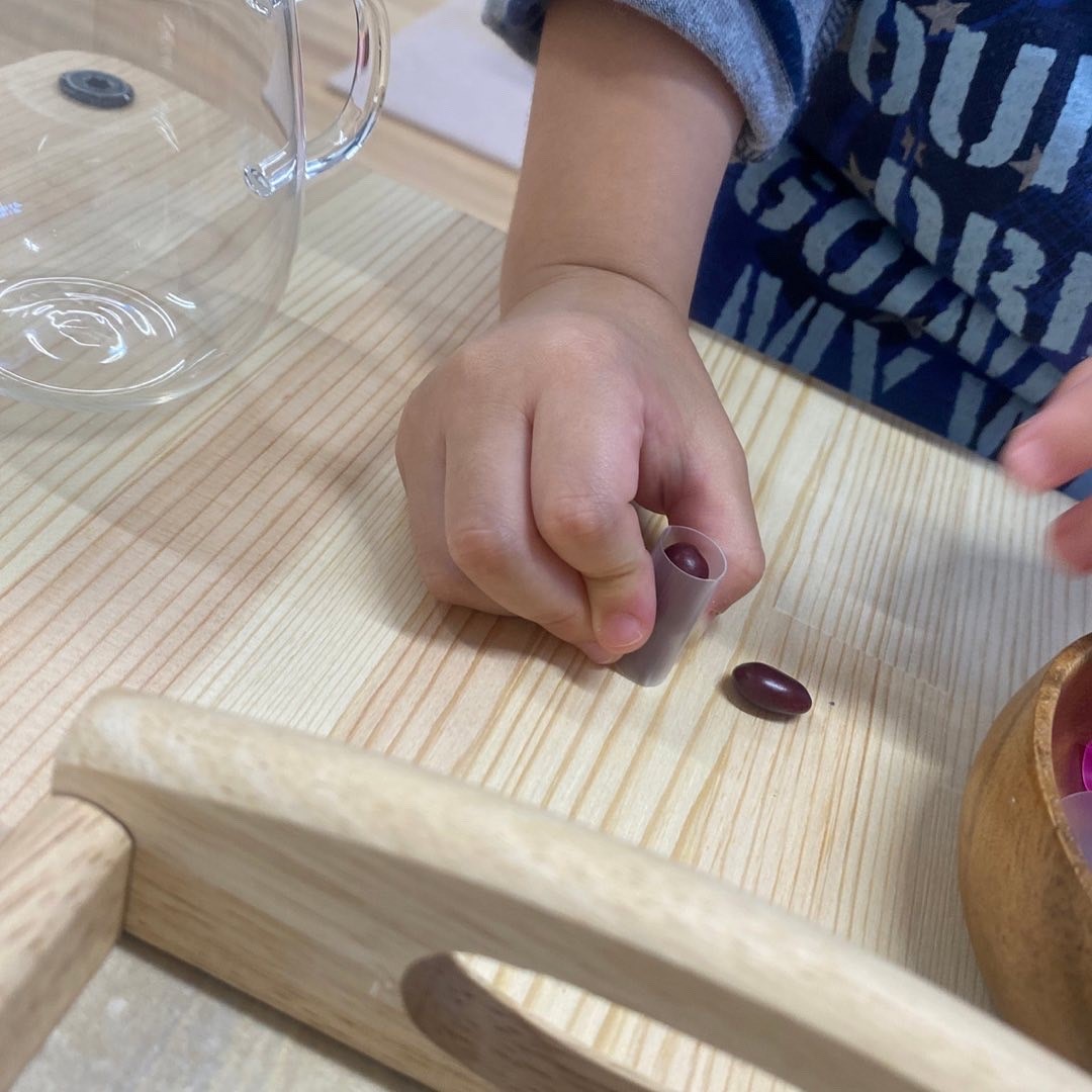 瓶や太めのストローの中に 【入りそうなもの】を部屋の中から探してきて、詰める!詰める!ひたすら詰める! 真剣に探しながら試してみて、入らなかったら小声で『あっ』と言って元の場所に戻していました♪ 入った時はとても嬉しそうというより幸せそうな笑顔を見せてくれる2歳さん。 でも大人はつい「も~全部ぐちゃぐちゃにして、なにしてるの?」って思ってしまうかもしれません。 ![]() ![]() ![]() しかし!!!この指先をよく使って《詰める》ことを繰り返しているうちに、《つまむ》が上手になりました!! 大人にとっては?な時間も子どもにとっては自分を成長させる大切な時間。 その時は意味がないような動きに見えても、こうやって成長に繋がっていきます。 ![]() ![]() 同じ動きでも【見え方】が変わってきませんか?(´ー`) しかし 『目の前の子育てにいっぱいいっぱいで、なかなか気持ちに余裕を持って関わってあげられない。成長の印に気付けない・・・』 という親御さまの声も多く届いています。 教室ではお子さまの小さな成長の姿を見つけてお伝えすると、 「なるほど!この動きにはそんな意味があったんですね!」 「家でも、見方を変えて関わってみます!」 と一緒に喜びや発見を共有できることが私もやりがいを感じています。 教室では私も【先生】として一歩離れて見れるからこそ、お子さまの成長のサインに気付けることも多いのかもしれません( ˘ω˘ ) ぜひ気になる方は遊びにいらしてくださいね♪ 福岡モンテッソーリ教育 福岡モンテッソーリ教室「てんしのおうち」 長尾教室:福岡県福岡市城南区長尾 照葉教室:福岡県福岡市東区照葉 福岡ベビーシッター