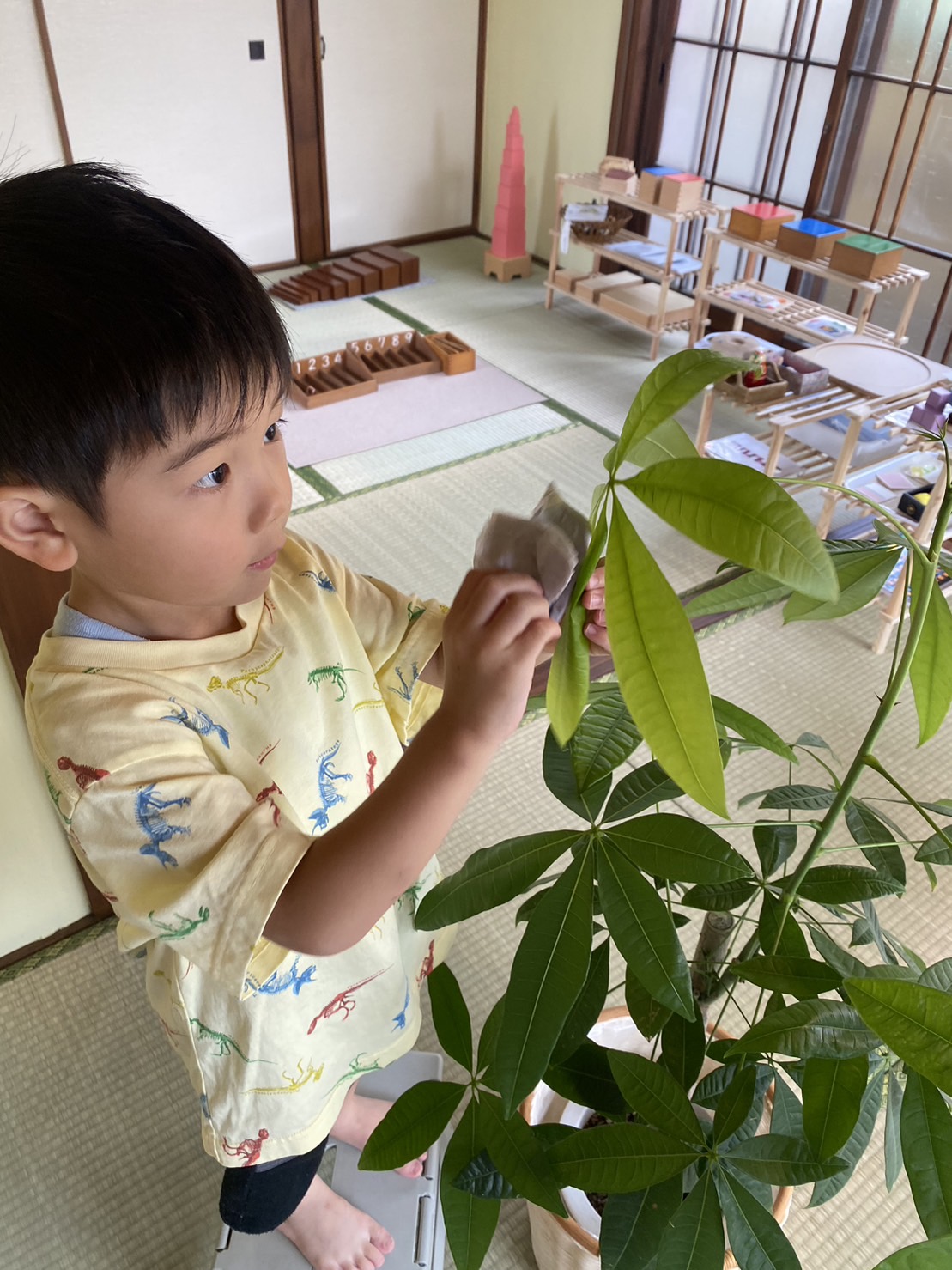 恵みの雨のおかげかトマトもぐんぐん大きくなり・・・!! 急遽大きい支柱に変えました(*^^*) 小さな実がどんどん増えていて、『あかちゃんだ~!!』と子どもたちも愛おしそうにトマトを観察していますよ♪ ![]() ![]() ![]() お花やお野菜に水をあげたり、花瓶にお花を生けたり、観葉植物を水拭きしたりと 【植物のお世話】も活動に取り入れています☆彡 柔らかい葉っぱを傷つかないようにそっと拭くのは力加減を調節したり、集中力も必要です!! 葉っぱの下に手を入れて優しく拭きながら、『葉っぱ気持ちいいかな~?』と年少さんの男の子(*^^*) 自分が働きかけることで、きれいになり、生き物も喜んでくれる!! そんな経験をしながら思いやりの心も育んでいけたらなあと思います( ^^) 体験会も随時開催中☆ お気軽にお問い合わせください♪ 福岡モンテッソーリ教室てんしのおうち 福岡ベビーシッター |