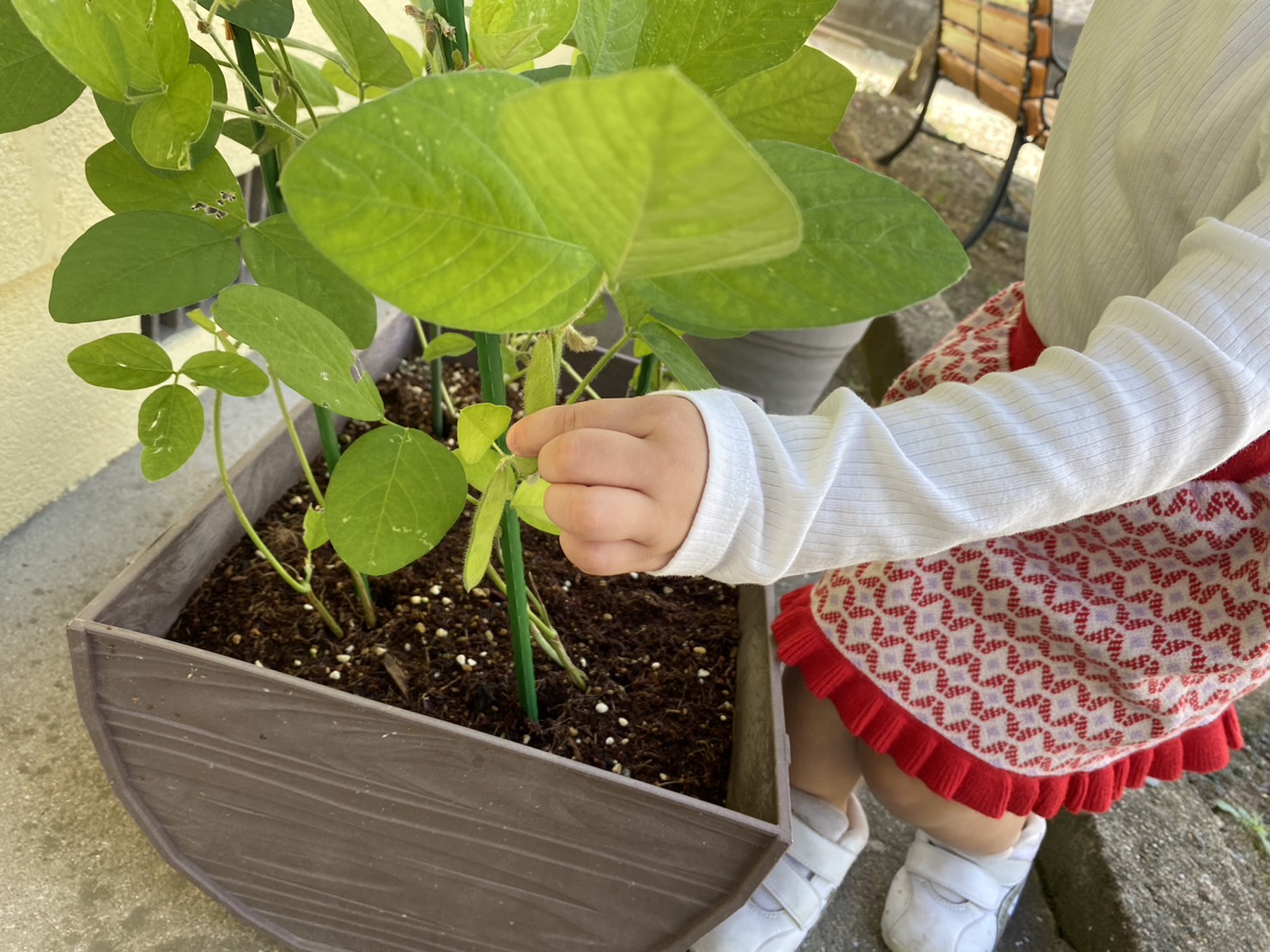 9月に植えた枝豆も、花が咲き終わりサヤができはじめました!! ふっさふさの小さい赤ちゃん枝豆・・・♡ ![]() ![]() 私もですが子どもたちも保護者の方も初めて見る小さな枝豆に 『あかちゃんだあ!かわいい~( *´艸`)』と観察を楽しんでいます。 落ちてしまわないようにそーっと優しく触って、感触を確かめる子どもたち! 『ふさふさ』『ちくちく』『ふわふわ』と感じ方もそれぞれ♪ ![]() モンテッソーリ教育では様々な異なる材質のものを触る活動も多く、 【自分で触って確かめて違いに気付く】ことで感覚器官を敏感にしていきます☆彡 子どもたちが何でも触りたがるのも、このように自分自身を成長させるために必要な行動だったりするんです♪ サヤの中の実はまだ小さいのでこれからどんどん大きくなるかな? 収穫するのを楽しみに待ちたいと思います♪ 秋の体験会も受付中です! 質問等も【お問い合わせ】フォームからお気軽にご連絡ください(´ー`) 福岡モンテッソーリ教室てんしのおうち 福岡ベビーシッター |