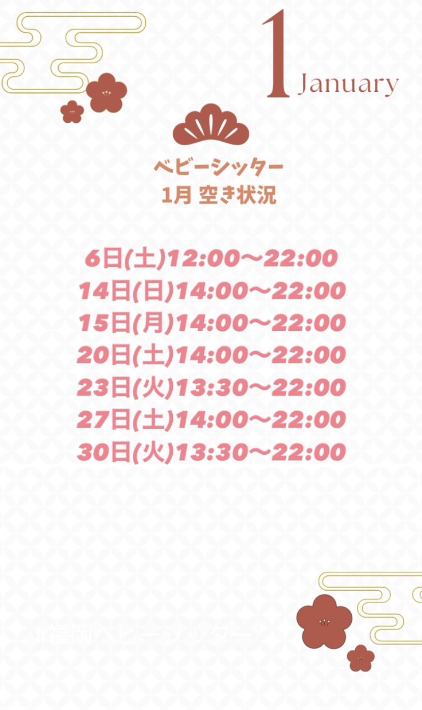 1月のご予約を開始いたします(*^^*)
