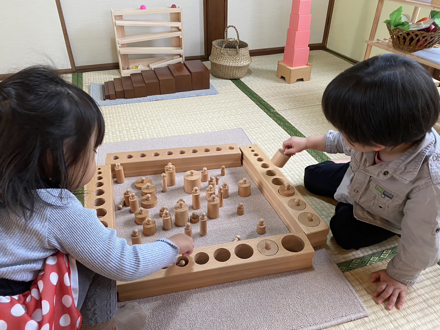 昨日は1歳児さんと2歳児さんとペアレッスンでした(*^^*) まずは自己紹介!! 初めましてで最初は少し緊張気味の2人でしたが、あっという間に打ち解けていました♪ ![]() それぞれに自分のおしごとに集中しながら、たまにチラチラっと見て『それやりたい!!』と意欲を高め合う姿も…(●´ω`●) 最後に一緒に円柱さしの活動をしたのですが、『どれかな~?』『これがぴったりじゃない?』『ありがと』と可愛らしいやり取りもありました。 ![]() お子さま2人までのレッスンなので、それぞれ必要に応じて細やかなサポートをさせていただいております。 ひとりの活動も、お友達と一緒にする活動も、自分の意思で決めて楽しむ!そんなアットホームな空間を今後も大切にしたい!改めてそう思えたひとときでした☆ 先日1歳のお誕生日を迎えたばかりのお友達も体験に来てくれ、来月から母子一緒にレッスンスタートします★ |
