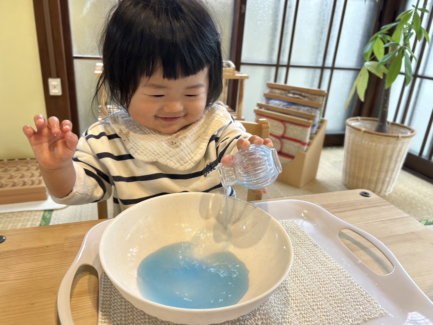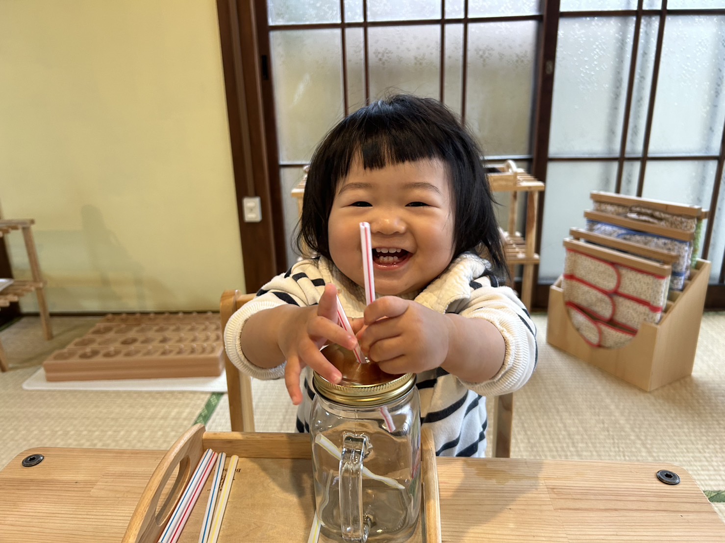 てんしのおうちの最年少の女の子★ 10か月の頃にご連絡をいただき、1歳のお誕生日を迎えたタイミングで体験、先月から通い始めてくれました♪ 環境に慣れるのも早く、驚くことに3回目のレッスンから完全に母子分離で50分ニコニコ笑顔で過ごしています(*^^*) ![]() しっかりとした足取りでお教室の中を歩き、気になる教材をどんどん手に取っていく女の子。 小さいながらにひとつひとつ自己選択をしていて、言葉はなくとも『なにしようかな~?』と考えているのが表情で伝わってきます(●´ω`●) また教材だけではなく取り組む場所も好みがあるようで、畳の上ではなく机をチョイスし嬉しそうに椅子座る姿が・・・( *´艸`) この一つ一つの【選ぶ(決断)】経験をたくさん積み重ねることで、【考える力】【責任感】が大きく育まれていきますよ。 次回のコラムで詳しくお話ししたいと思いますので、ぜひまた覗かれてみてくださいね♪ ![]() ![]() ぜひ教室に興味のある方は、一度体験にいらしてくださいね♪ 《モンテッソーリレッスン》 おとな1人にこども2人までの特別な教室♪ 1回50分です。 《えんじぇるクラス》 2.5時間の中でモンテッソーリ活動やリトミック、お散歩・公園などの戸外遊びを楽しみます。 福岡モンテッソーリ教室てんしのおうち 福岡ベビーシッター |