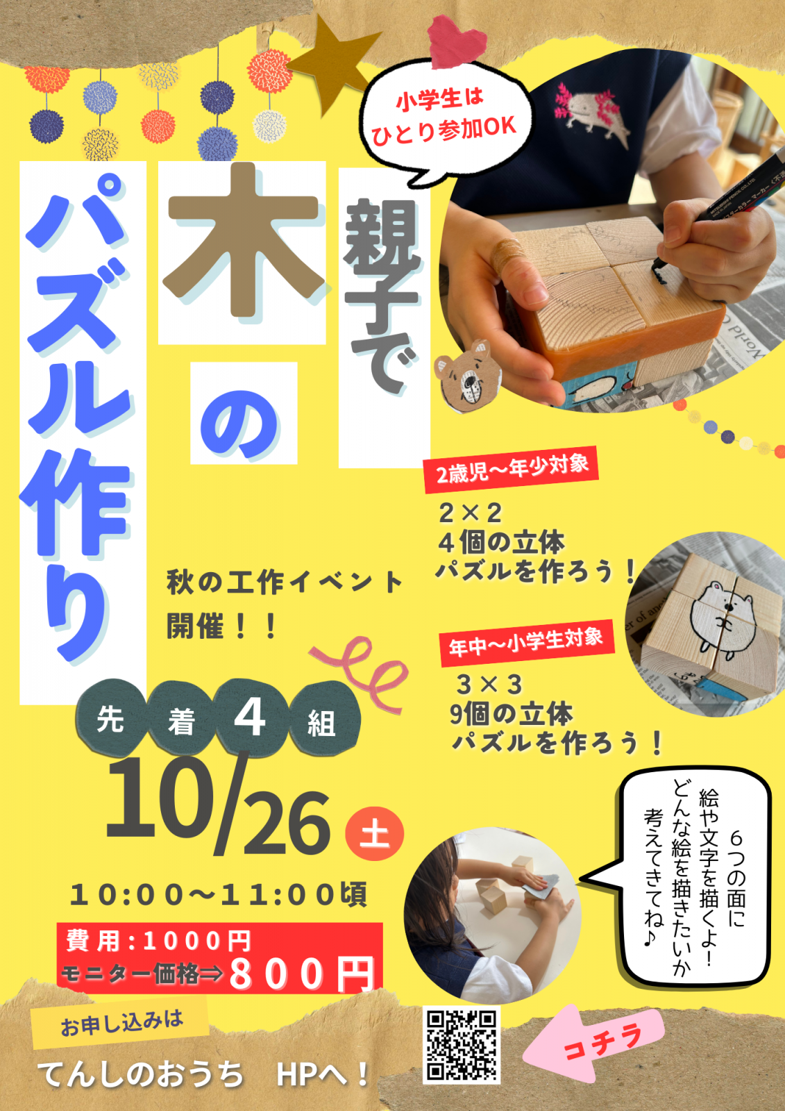 秋の工作イベント!木のパズル作りを開催します♪ |