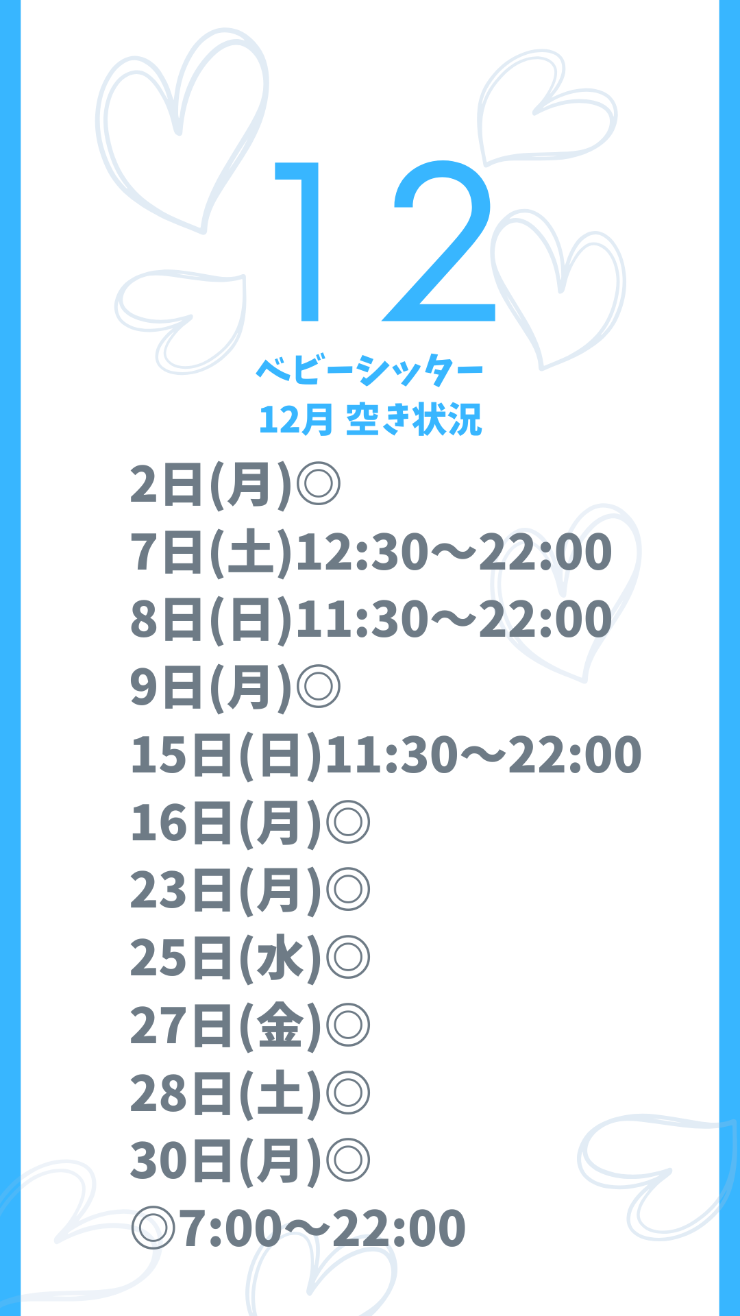 ベビーシッター12月ご予約受付開始 |
