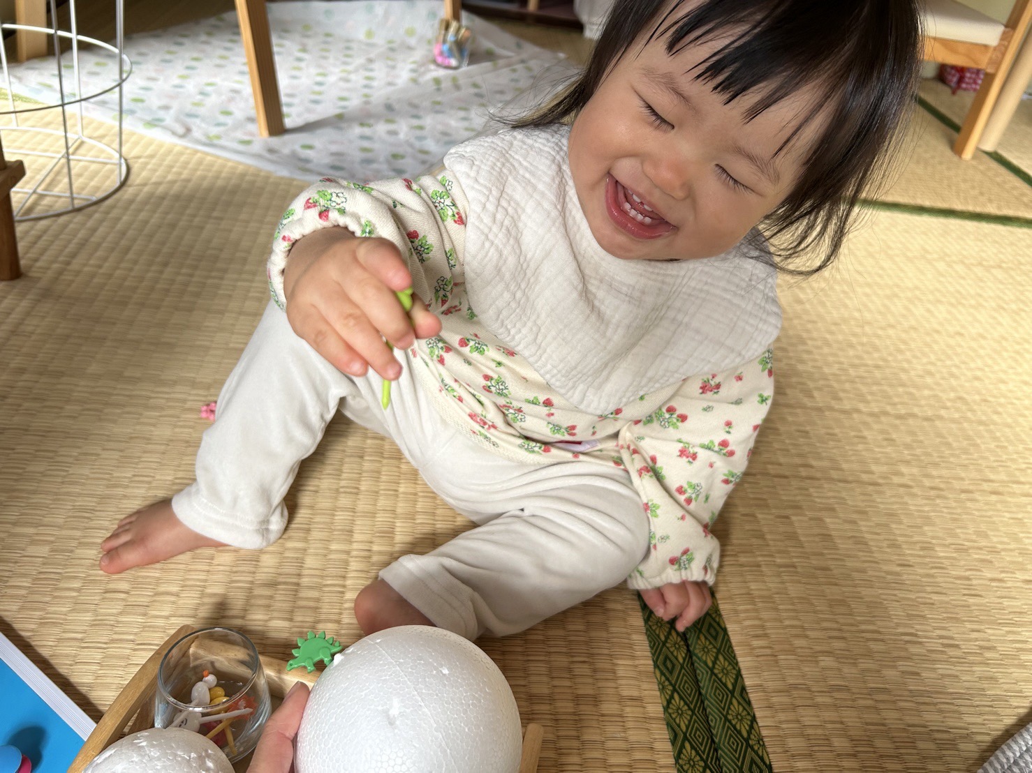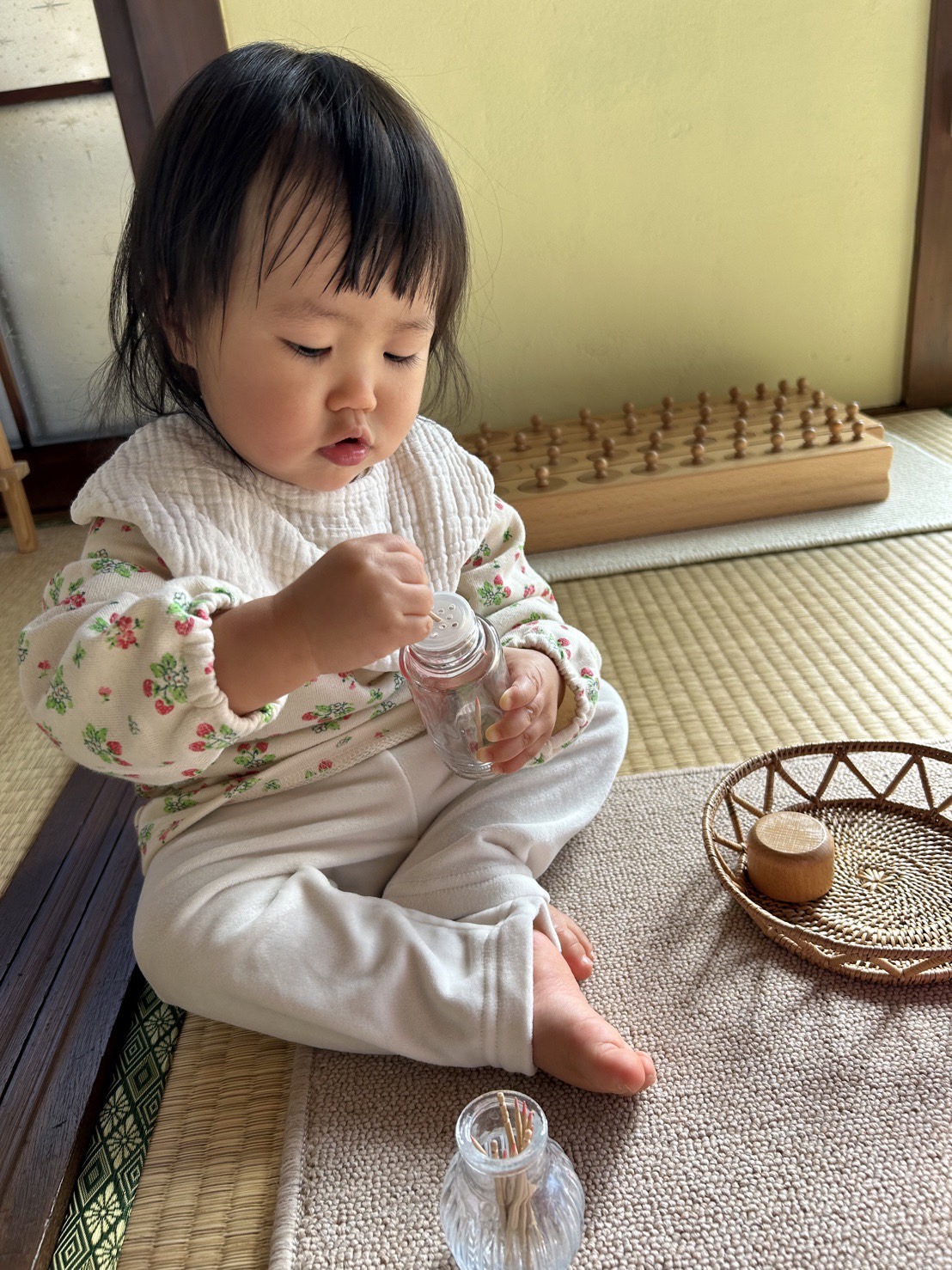 教室に通ってくれている最年少のおともだちの様子♪ 1歳1ヶ月から来てくれるようになり丸2か月が経ちました☆ 最初様子を見ながら母子分離を徐々にしていく予定でしたが、泣くこともなくニコニコだったので初日から母子分離スタート!! ![]() 初日からこの笑顔で私も驚きました(≧▽≦) 【落とす】動きがとてもお気に入りのようで、太めのストロー落としから始め、今は爪楊枝やビーズもお手の物になりました♪ ![]() ![]() 毎週毎週できることが増えていて、この時期の吸収スピードは本当にすごい!! ![]() 最近は左手で瓶を持ちながら入れる事が出来るように!! 円柱さしを三本指でつかんで真剣な眼差しで出していく姿もあります☆彡 最近は伝い歩きとハイハイでお部屋中を動きながら止まることなく50分活動していますよ。 レッスン後保護者の方から、 『相当楽しいようでレッスンが終わっておうちに帰ると大泣きで何回もリュックを持ってまた行こうとします・・・(笑)』 と嬉しいお言葉も・・・ これから成長を一緒に感じていけるのがとても楽しみです!! ![]() 《モンテッソーリレッスン》 おとな1人にこども2人までの特別な教室♪ 1回50分です。 《えんじぇるクラス》 2.5時間の中でモンテッソーリ教育の活動やリトミック、お散歩・公園などの戸外遊びを楽しみます。 《わくわくシッター》 1歳半~/単発3時間~/ちょっとしたお困りの際にお預かりいたします。ご自宅、公園、商業施設などご希望に沿ってサポートいたします。 福岡モンテッソーリ教室てんしのおうち 福岡ベビーシッター 福岡モンテッソーリ教育 |