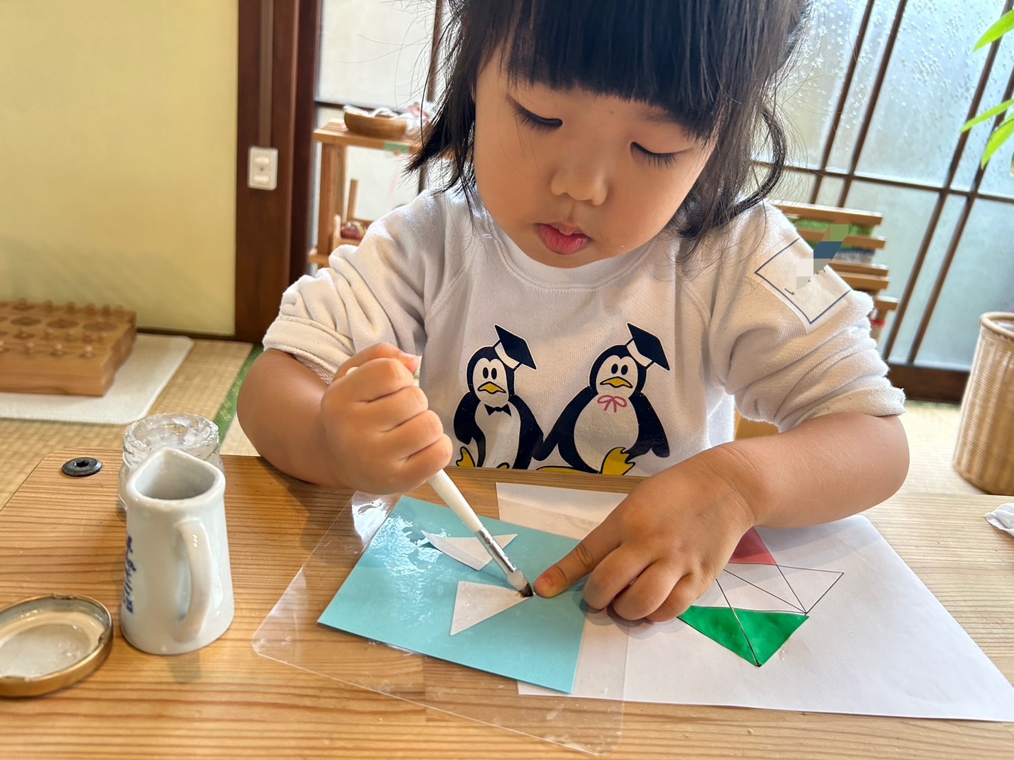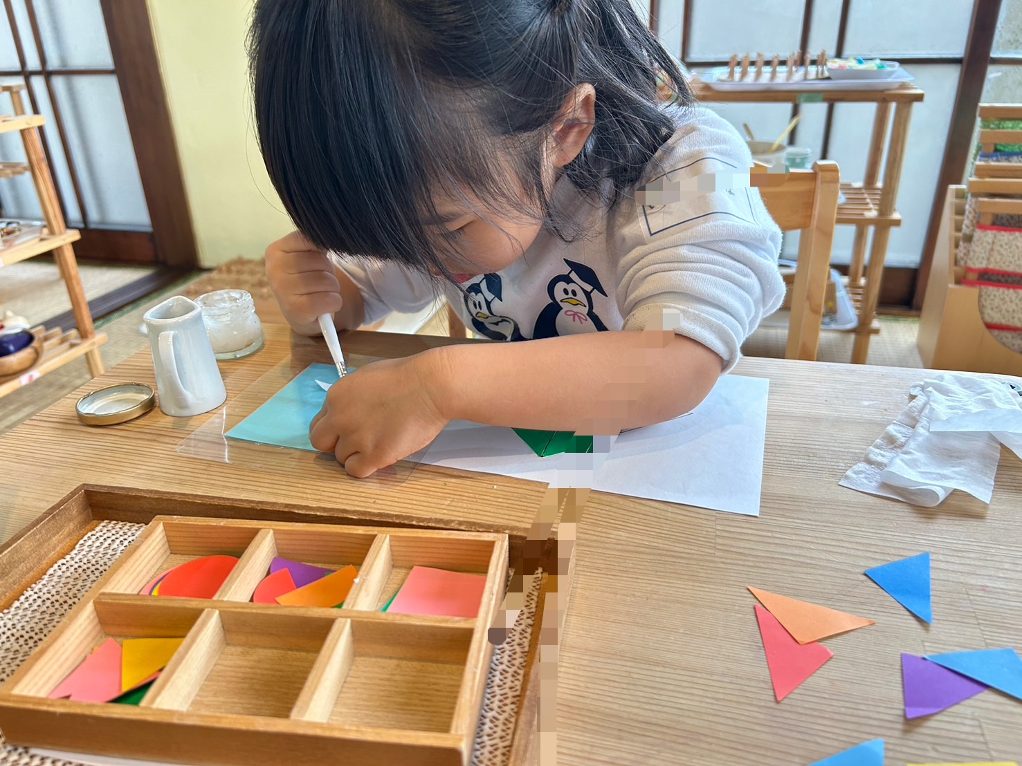 糊貼りのおしごと♪ 同じ図形の紙を探して向きを線の中に合わせ、貼っていきます。 ![]() スピーディにささっと塗って貼るのは簡単! しかし端まで糊がついておらず、端がピラピラになってしまいますよね。 てんしのおうちではせっかくなので 『早く完成する事よりも端っこまで丁寧に塗る事が大事よ~!』とお手本を見せながら時間をかけて仕上げていきます。 2歳児さんも丁寧に丁寧に貼っていくと・・・ ![]() こんなにきれいに仕上がりました!! ![]() 幼少期、速さなどよりも質や過程を大切に関わっていきたい!というのがてんしのおうちのモットーです♪ 今後小学生、中学高校、大人になってもこの考え方もあるんだよ!と子どもたちの頭の片隅に残っていたら嬉しいです(*^^*) 《モンテッソーリレッスン》 おとな1人にこども2人までの特別な教室♪ 1回50分です。 《えんじぇるクラス》 2.5時間の中でモンテッソーリ教育の活動やリトミック、お散歩・公園などの戸外遊びを楽しみます。 《わくわくシッター》 1歳半~/単発3時間~/ちょっとしたお困りの際にお預かりいたします。ご自宅、公園、商業施設などご希望に沿ってサポートいたします。 福岡モンテッソーリ教室てんしのおうち 福岡ベビーシッター 福岡モンテッソーリ教育 |