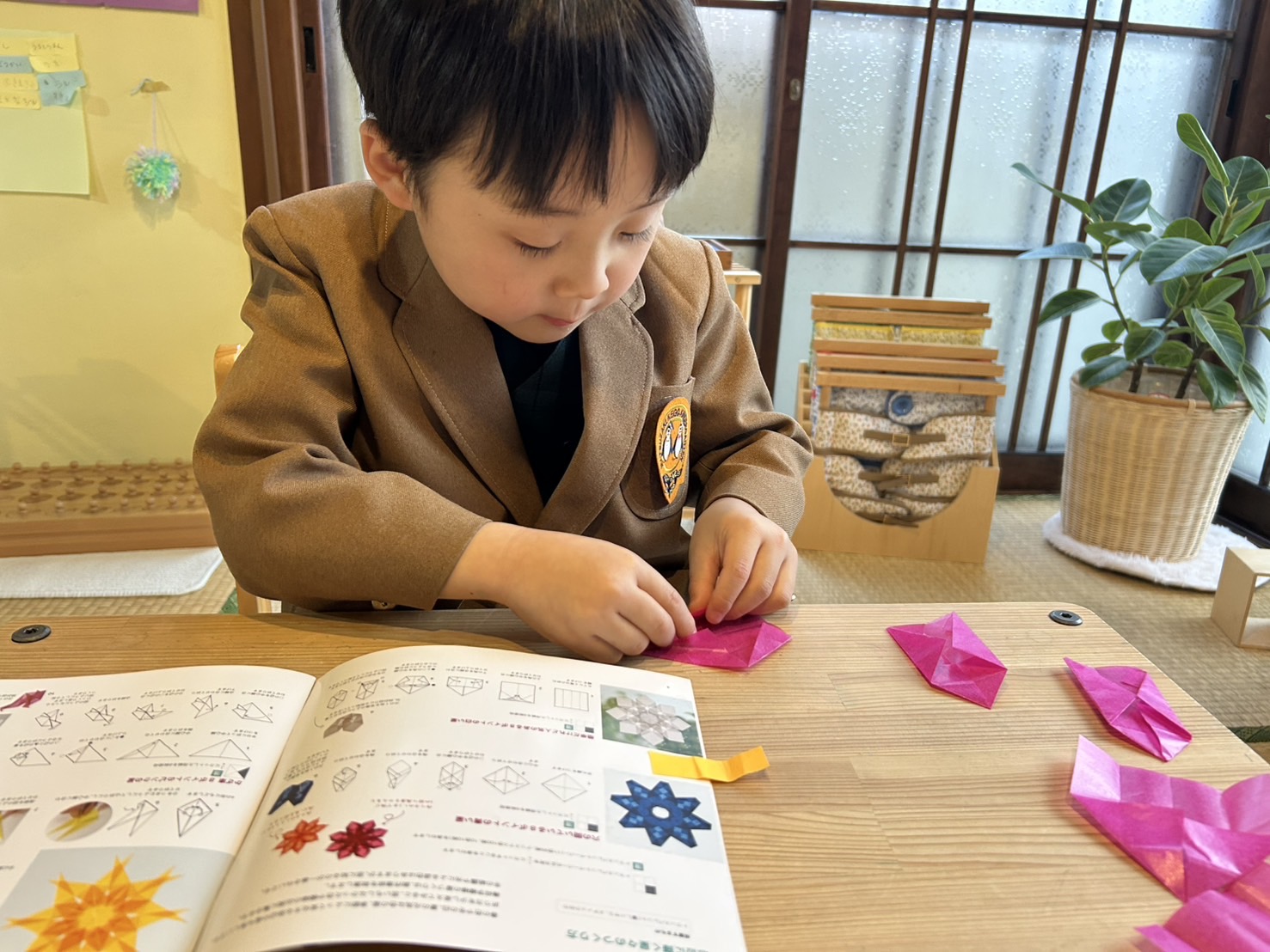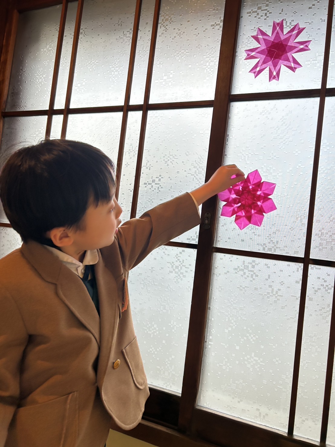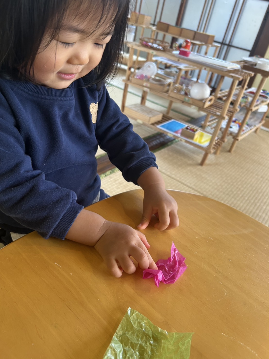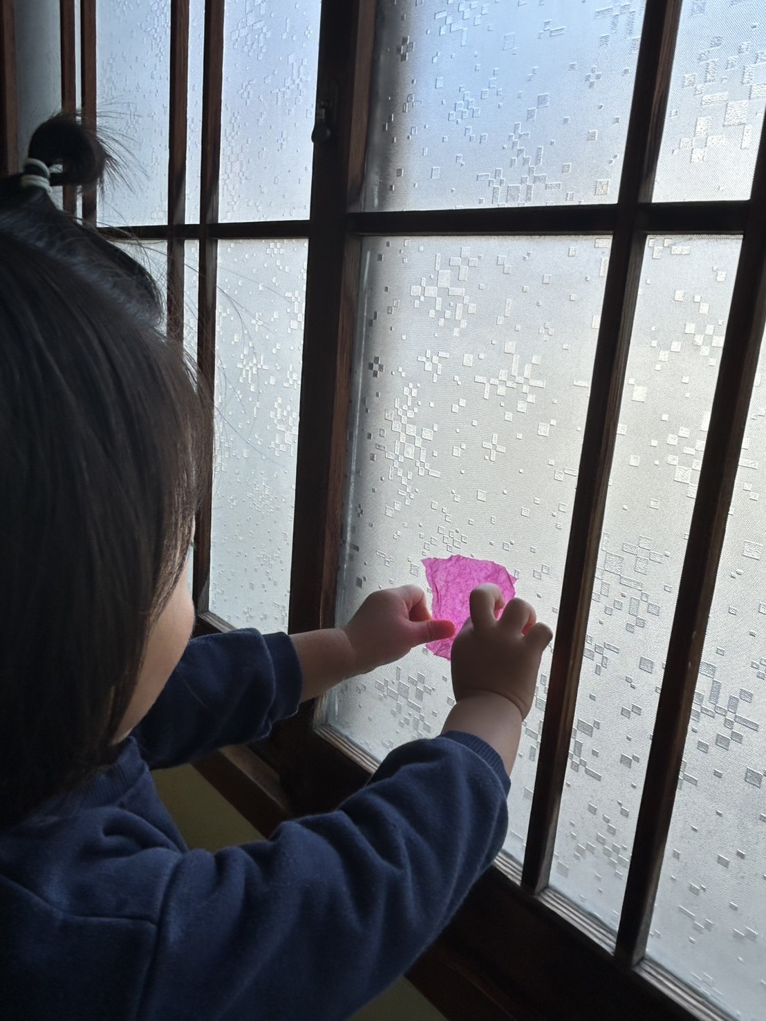 先日購入したオランダ製の【トランスパレントペーパーの折り紙】! 普通の紙とは違い、半透明で少しシャカシャカ感のある触り心地が特徴です♪ 光を通すので、重なり方や合わせる色で見え方が変わり私も大好きな折り紙です(*^^*) ![]() ![]() ![]() 好きな色、好きな形を子どもたちに選んでもらい、小さい子たちはくしゃくしゃに丸めて~伸ばし~を繰り返しシワの模様も楽しんだり、大きい子たちは一緒に説明書を見ながらサンキャッチャー作りを楽しんでいます★ ![]() ![]() 発達に応じて様々な楽しみ方が出来ますよ♪ ![]() 夕方の部屋の明かりに照らされて、昼とはまた一味違う…(●´ω`●) てんしのおうちの窓にも増やしていこうと思います♪ 《モンテッソーリレッスン》 おとな1人にこども2人までの特別な教室♪ 1回50分です。 《えんじぇるクラス》 2.5時間の中でモンテッソーリ教育の活動やリトミック、お散歩・公園などの戸外遊びを楽しみます。 《わくわくシッター》 1歳半~/単発3時間~/ちょっとしたお困りの際にお預かりいたします。ご自宅、公園、商業施設などご希望に沿ってサポートいたします。 福岡モンテッソーリ教室てんしのおうち 福岡ベビーシッター 福岡モンテッソーリ教育 |