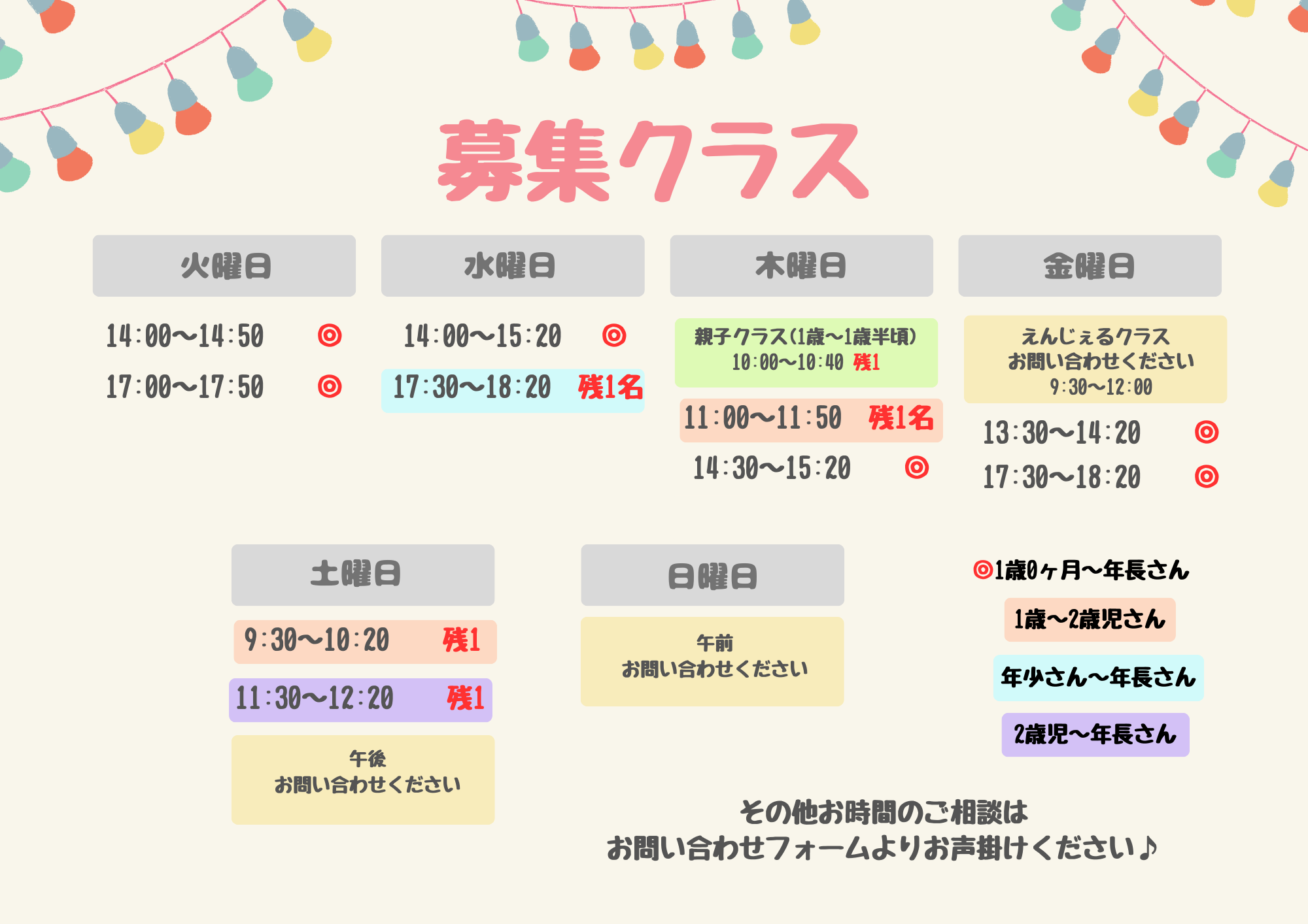四月に入り暖かくなってきましたね!( ˘ω˘ ) 一か月後には『もう夏日だ!!暑い!!』と言ってそうです((笑)) てんしのおうちも無事に令和7年度がスタートし、既存のお友達のレッスン日が確定しましたので 空きクラスをご紹介いたします。 平日午前中やお昼過ぎ、親子クラスは比較的ご要望に沿えると思いますのでご相談くださいね♪ ![]() ※金曜午前中も通常レッスン空いております。(4月現在) 自然体験ツアー、マルシェ、手作りねじ回しおもちゃ販売などなど 少しずつ(本っ当に少しずつ(笑))動いておりますので またお知らせします♪ 今年中には形になりますように、、、(*ノωノ) 今年度もどうぞよろしくお願いいたします! 《モンテッソーリレッスン》 おとな1人にこども2人までの特別な教室♪ 50分/月3回 《えんじぇるクラス》 モンテッソーリ教育の活動やリトミック、お散歩・公園などの戸外遊びを楽しみます。 2.5時間/月3回 《親子教室》 親子で通っていただくクラス。モンテレッスンの他にふれあい遊びや座学、製作なども♪ 40分/月2回 《わくわくシッター》 1歳半~/単発3時間~/ちょっとしたお困りの際にお預かりいたします。ご自宅、公園、商業施設などご希望に沿ってサポートいたします。 福岡モンテッソーリ教室てんしのおうち 福岡ベビーシッター 福岡モンテッソーリ教育 |