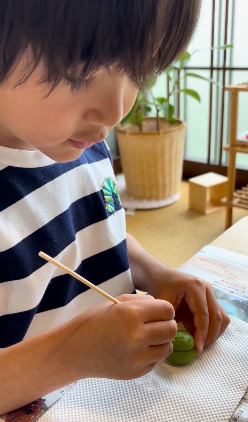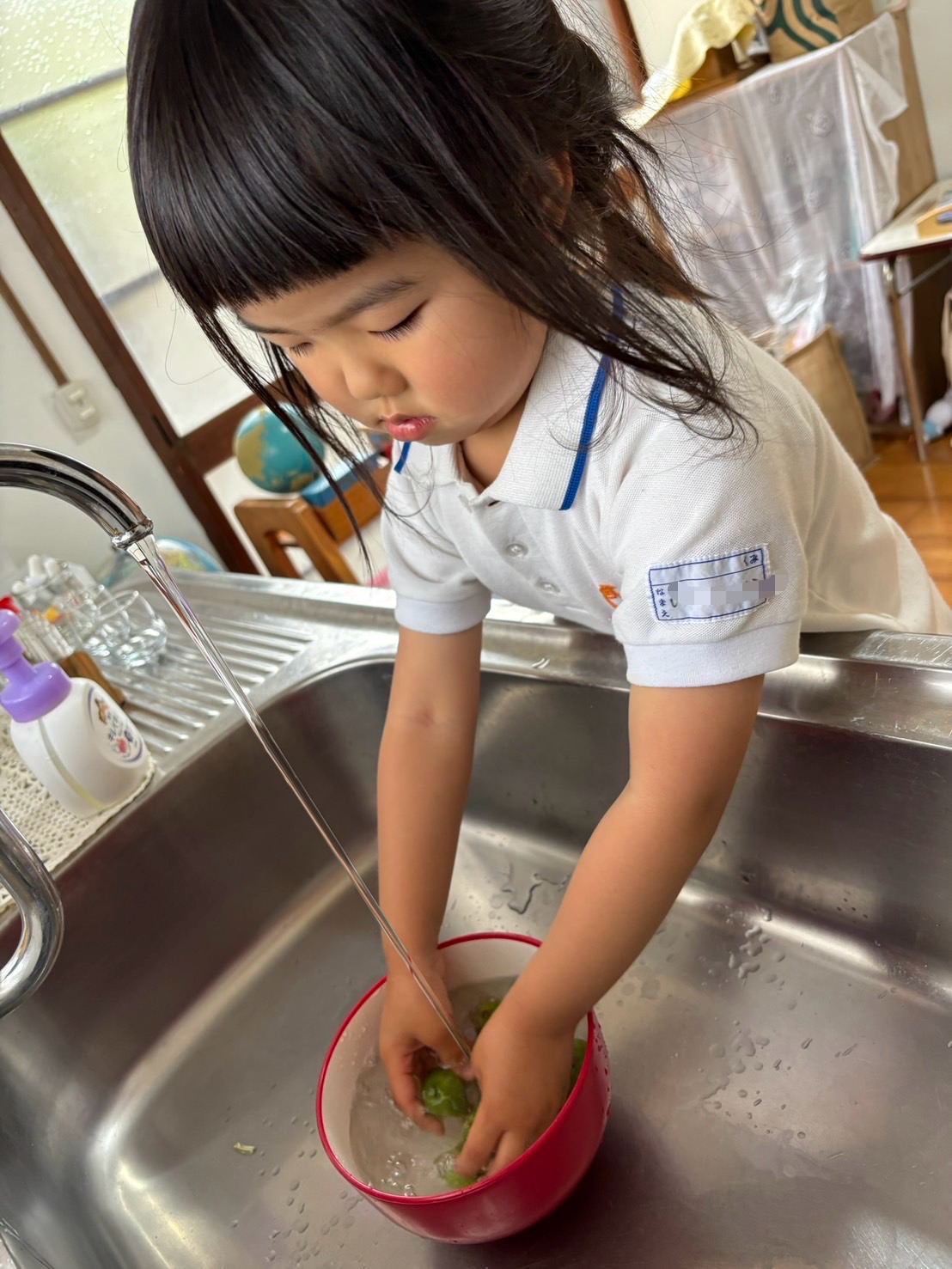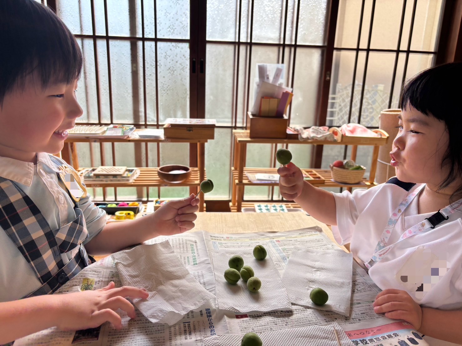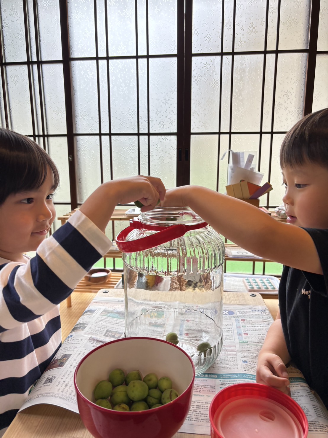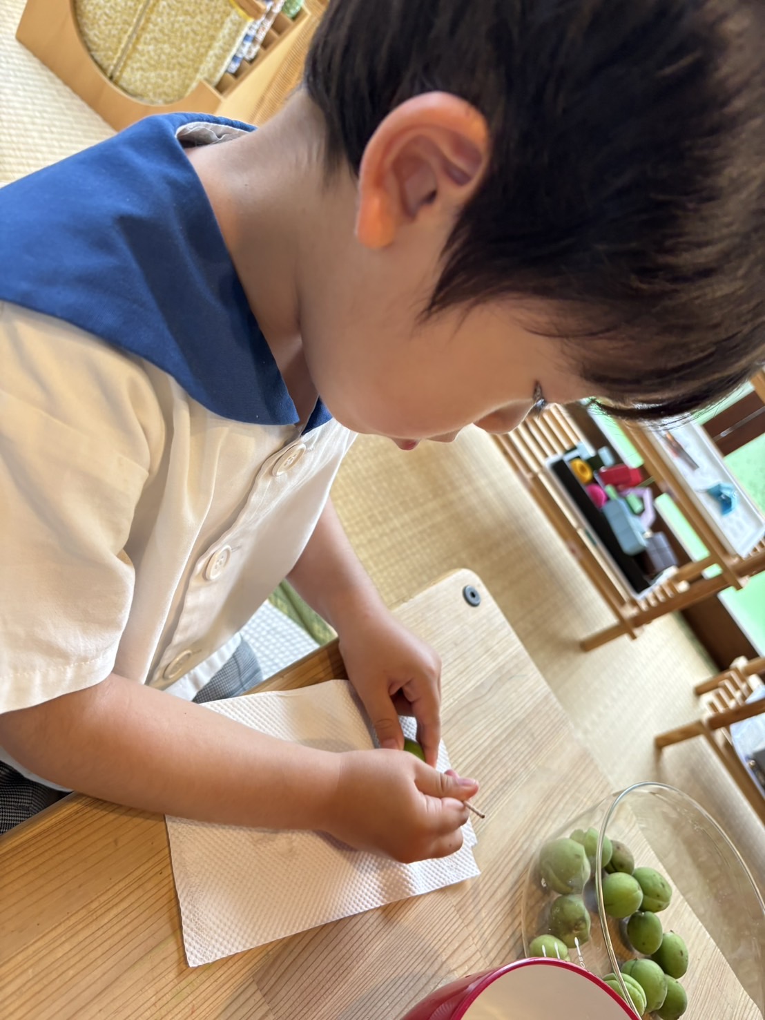 今年も毎年恒例梅ジュース作りをしました( *´艸`) 3年目にして初の豊作!!! 小さな木ですが、かなりの量実をつけてくれました♪ ![]() 梅をちぎったあとは、水で洗って、水気を取ります。 ![]() ![]() ヘタを取り、竹串・つまようじでプスプス♪ 子どもたちが一番好きな工程です(*^^*) 『いーち、にー、さーん!』数を数えながら穴をあけていくお友達も! ![]() ![]() 『おだんごみたーい!』それぞれイメージが違って面白い♪ ![]() みんな『まだ!?』 『できた!?』と楽しみにしています(*^^*) 一見爪楊枝や竹串は危ないように見えますが、串を持つ場所(先端の近く)、梅を机に置いて固定してさす事などお約束を伝える事で毎年誰も怪我することなく取り組んでいますよ★ 少し危なく感じるものも、配慮をすれば成長のチャンスに!!! てんしのおうちで大切にしているモットーの一つです(*^^*) 美味しいジュースになりますように!! ![]() 《モンテッソーリレッスン》 おとな1人にこども2人までの特別な教室♪ 50分/月3回 《えんじぇるクラス》 モンテッソーリ教育の活動やリトミック、お散歩・公園などの戸外遊びを楽しみます。 2.5時間/月3回 《親子教室》 親子で通っていただくクラス。モンテレッスンの他にふれあい遊びや座学、製作なども♪ 40分/月2回 《わくわくシッター》 1歳半~/単発3時間~/ちょっとしたお困りの際にお預かりいたします。ご自宅、公園、商業施設などご希望に沿ってサポートいたします。 福岡モンテッソーリ教室てんしのおうち 福岡ベビーシッター 福岡モンテッソーリ教育 |