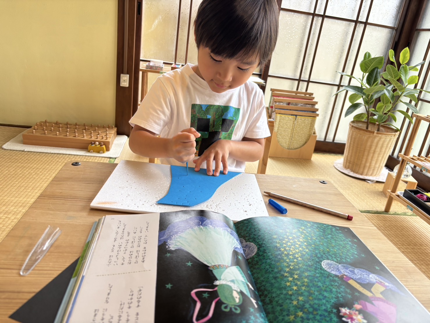 もうすぐ七夕ですね♪ 七夕のお話を読んだ後に、作りたいお友達に天の川制作を準備しました(*^^*) 画用紙に目打ちで穴をあけて、寝転がってライトに向けるとキラキラ~!と星のように光ります♪ ![]() ![]() 『プスッ』という穴をあける感触に夢中な子どもたち・・・( *´艸`) 『きれ~!!』とうっとりする姿が可愛らしいですね♪ ![]() ![]() おうちでも寝る前に何回も見てくれるお友達もいるようです★ みんなのお願い事が叶いますように♡ 《モンテッソーリレッスン》 おとな1人にこども2人までの特別な教室♪ 50分/月3回 《えんじぇるクラス》 モンテッソーリ教育の活動やリトミック、お散歩・公園などの戸外遊びを楽しみます。 2.5時間/月3回 《親子教室》 親子で通っていただくクラス。モンテレッスンの他にふれあい遊びや座学、製作なども♪ 40分/月2回 《わくわくシッター》 1歳半~/単発3時間~/ちょっとしたお困りの際にお預かりいたします。ご自宅、公園、商業施設などご希望に沿ってサポートいたします。 福岡モンテッソーリ教室てんしのおうち 福岡ベビーシッター 福岡モンテッソーリ教育 |